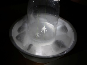 たつの市こどもサイエンスひろばの1月イベントで「天気のかがく」をテーマとして、午前中は小学生低学年を対象に「きれいな雪の結晶を作ろう」、午後は高学年を対象に「雪の結晶作りと冬の天気」を実施しました。当日は日本海からの雪雲が兵庫県南部にも雪を降らせ、朝は会場周辺も雪化粧で、とてもいいタイミングでの講座でした。全員がきれいな結晶を成長させることが出来ました。又、雪はどのようにして降るのか、なぜ日本海側に大雪が降るのかなど、物語風のパワーポイントで楽しく学習しました。